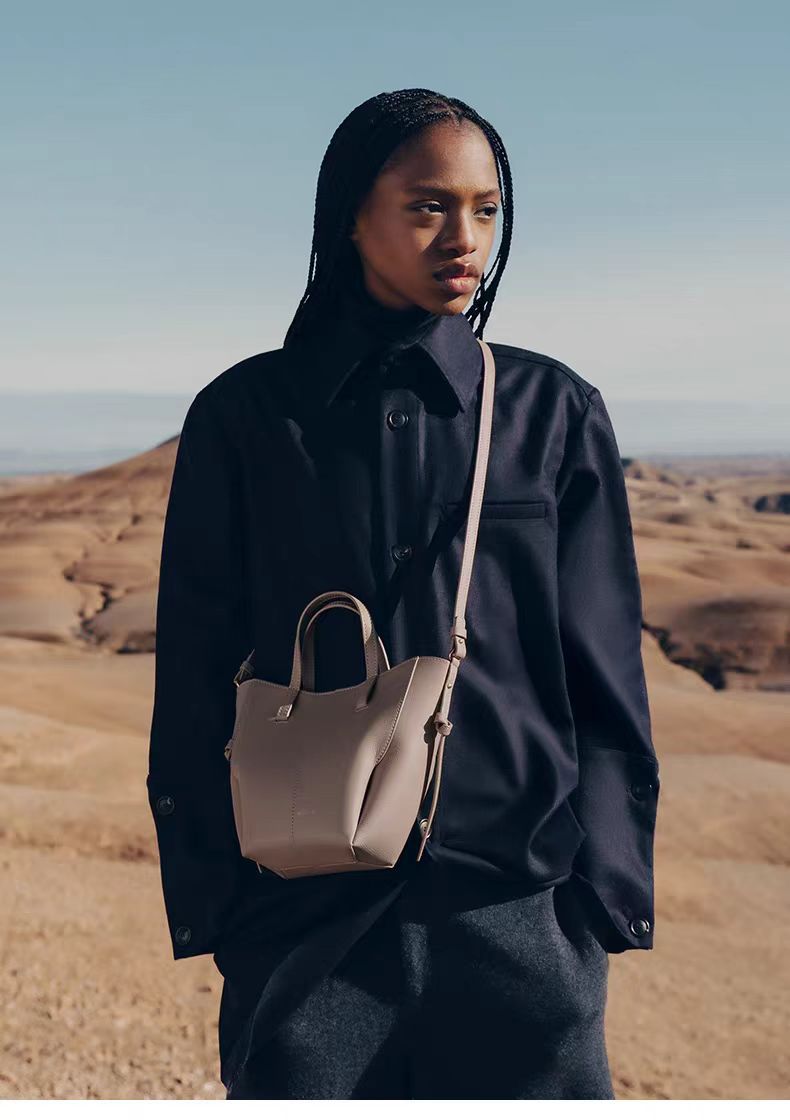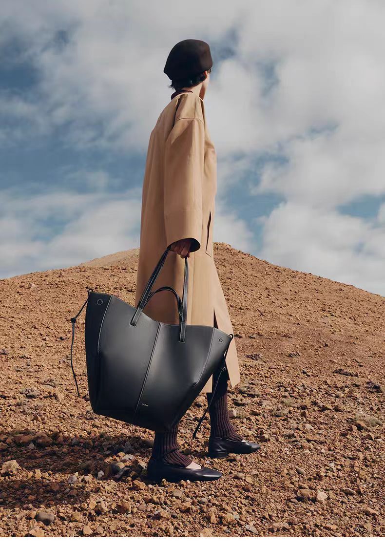 2026年春、そんなアイコンバッグ「シム」に縦型のトートバッグが仲間入り。「シム」の特徴はそのままに、PCやA4サイズの書類などがたっぷりと入る「シム トート」と、スマートフォンやカードケースといった小物類を収納するのに便利なミニサイズ「シム トート ナノ」の2種類が展開される。