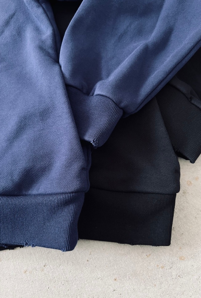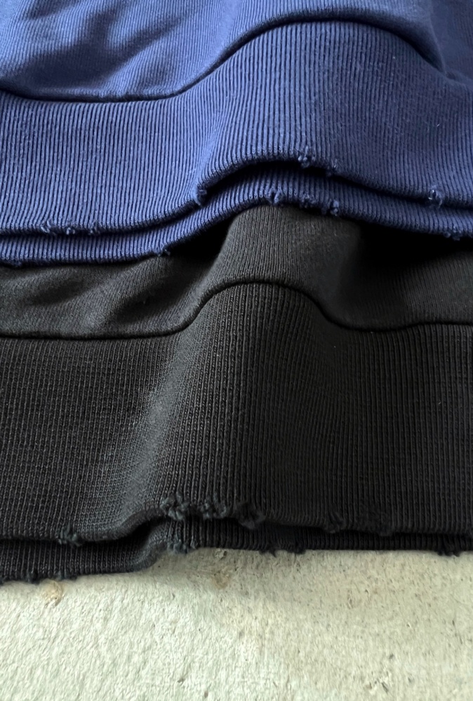 裾と袖口のリブ編み